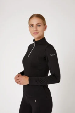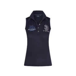 Dieses Turniershirt besticht durch seine elegante Kombination aus Texturen und femininen Details. Das Modell hat eine schlanke Linie, die die Taille betont, und zeichnet sich durch die Jerseyfront mit kleinen Falten und personalisierten Druckknöpfen aus. Der Rücken und die langen Ärmel sind aus leichtem und ungreifbarem Stoff mit einem Karomuster, das die Transparenzen mildert. Der hohe Kragen mit Cavalleria Toscana-Stickerei ist das Symbol für die raffinierte Ästhetik der Marke.