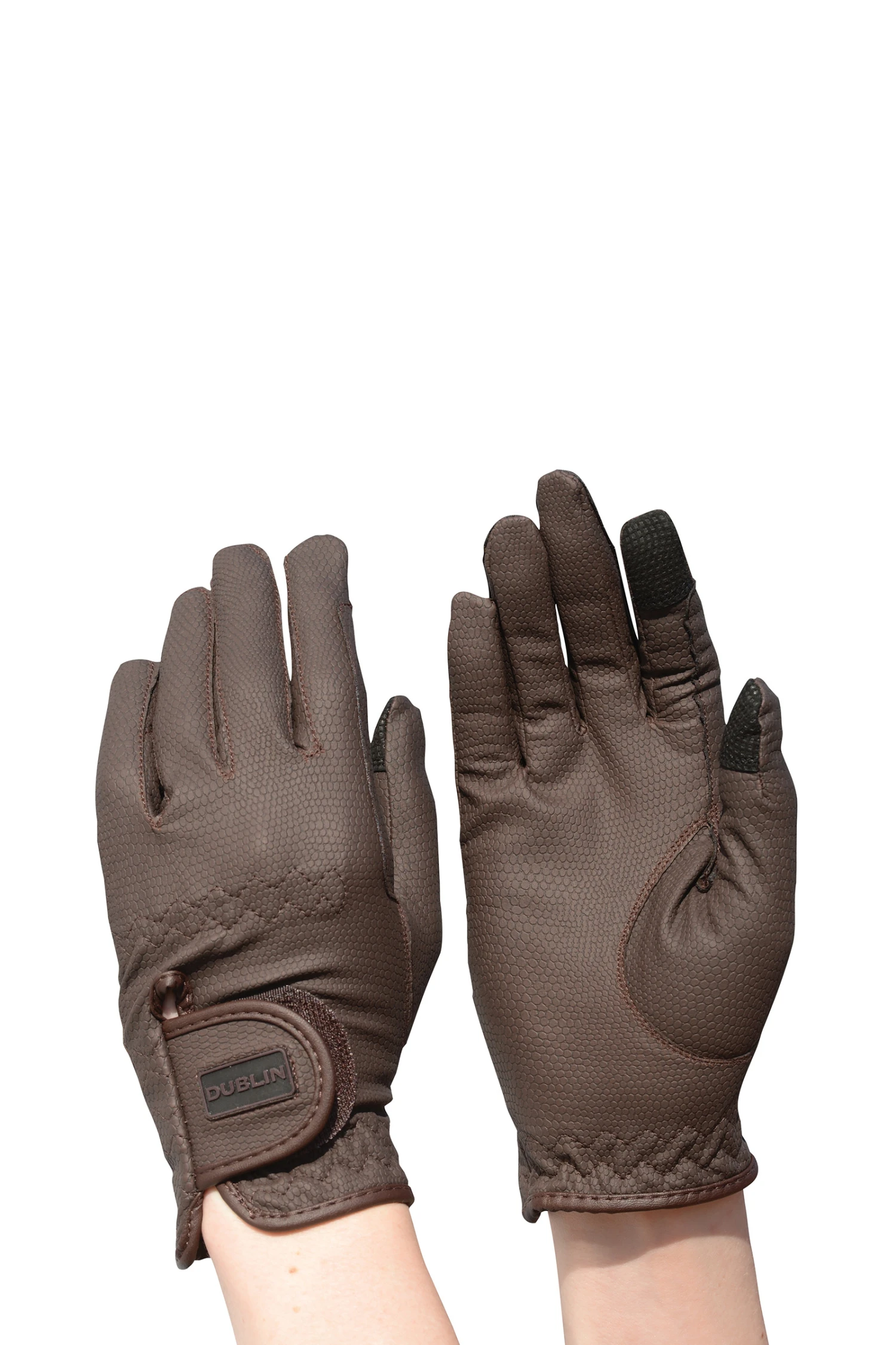 Die Dublin Everyday Touchscreen-kompatiblen Reithandschuhe bestehen aus dehnbarem, synthetischem KT-Serino-Material, haben einen verstellbaren Klettverschluss am Handgelenk und sind Touchscreen-kompatibel für eine einfache Handhabung.