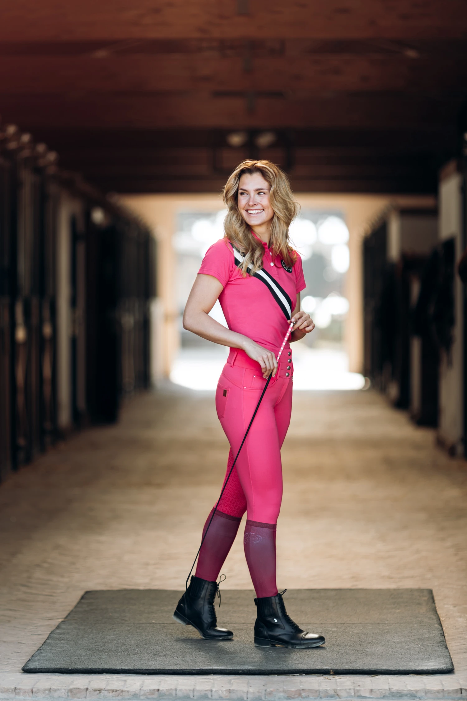 Das Horze Jessie T-Shirt ist aus atmungsaktivem Material gefertigt, das sich perfekt für deine täglichen Ausritte eignet. Das sportliche Design mit Kragen und kontrastierenden Streifen passt gut zu deiner Reitgarderobe. Druckknöpfe an der Knopfleiste sorgen bei Bedarf für zusätzliche Belüftung. Die Stickerei auf der Brust sieht zeitlos und schick aus. Trage dieses Shirt beim Reiten, im Stall oder in deiner Freizeit. Es lässt sich leicht mit Reithosen, Reitleggings oder Jeans kombinieren.