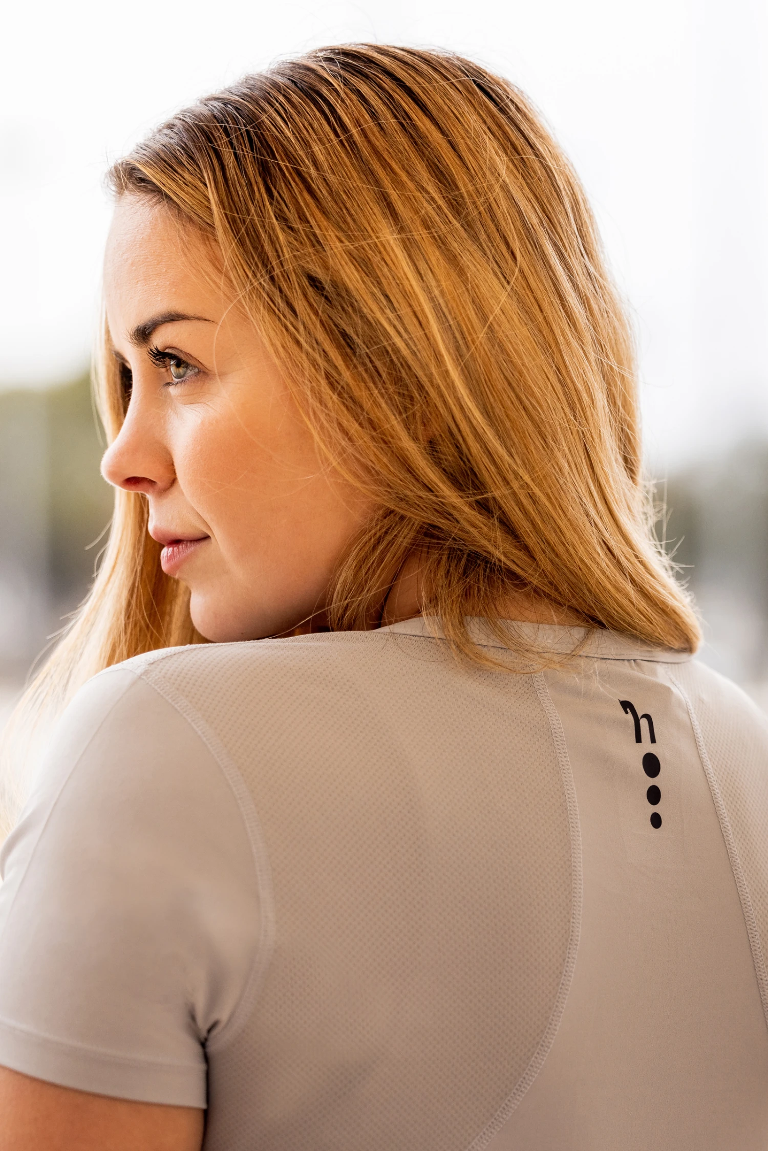 Das Lucy Funktionsshirt kommt in einem cleanen, sportlichen Design daher. Der taillierte Schnitt des dehnbaren Materials schmiegt sich eng an den Körper und bietet dennoch Bewegungsfreiheit. Atmungsaktive Mesh-Einsätze im Schulterbereich unterstreichen den sportlichen Look und die Funktionalität des Shirts. Das sportliche Rückenlogo passt zum Rest der Kollektion.