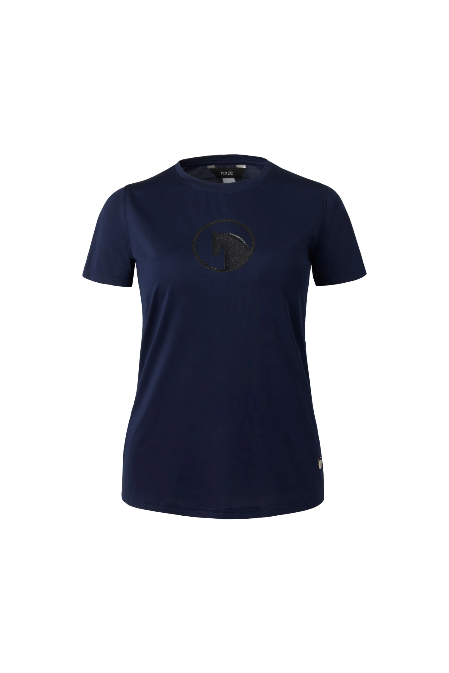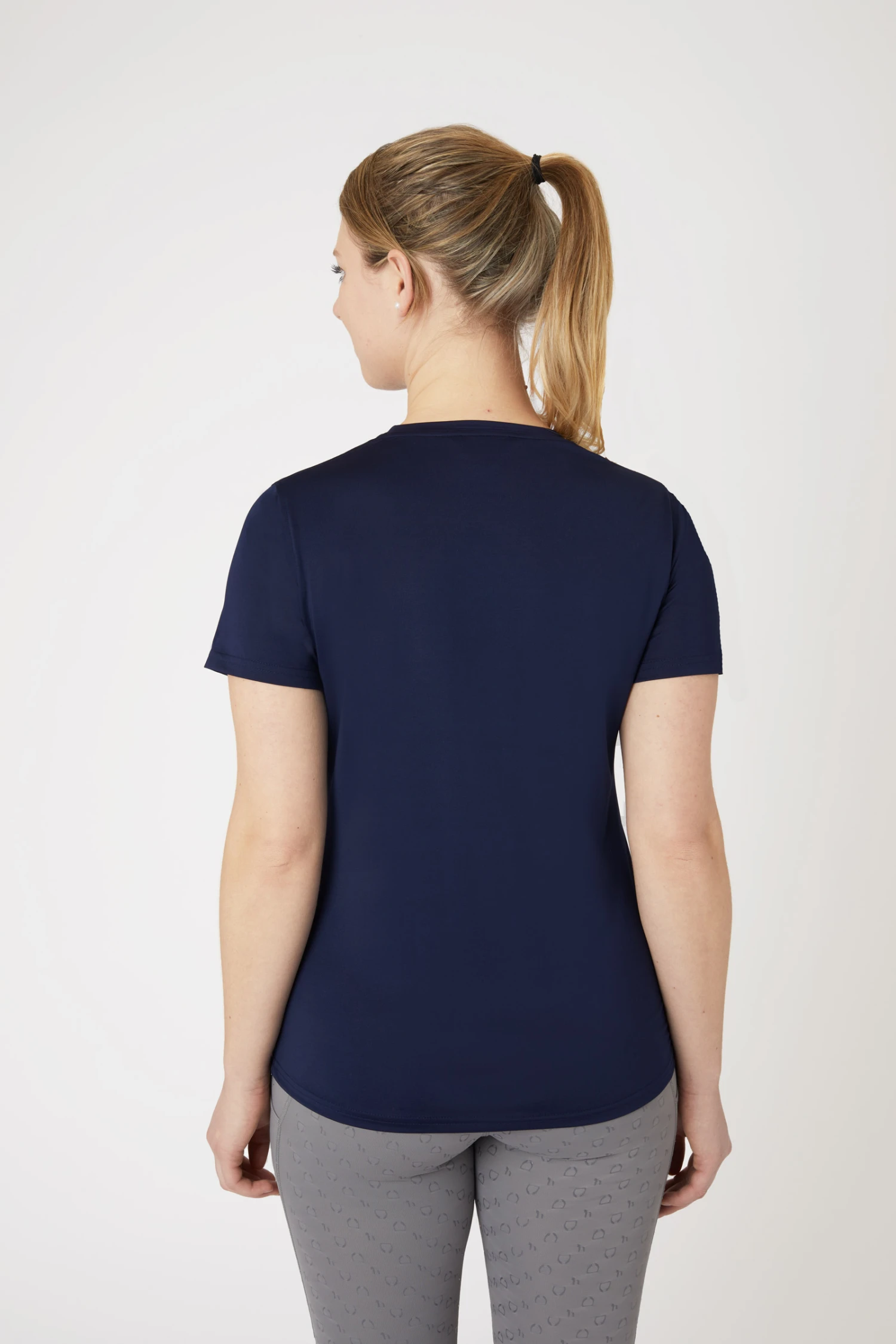 Dieses schlichte, funktionelle Modell hat ein großes Logo in glänzendem Metallic-Druck auf der Brust. Das atmungsaktive, schnell trocknende Mikrofasergewebe ist hautfreundlich und pflegeleicht. Eine perfekte Wahl, wenn du ein Basic in deiner Reitgarderobe haben möchtest.